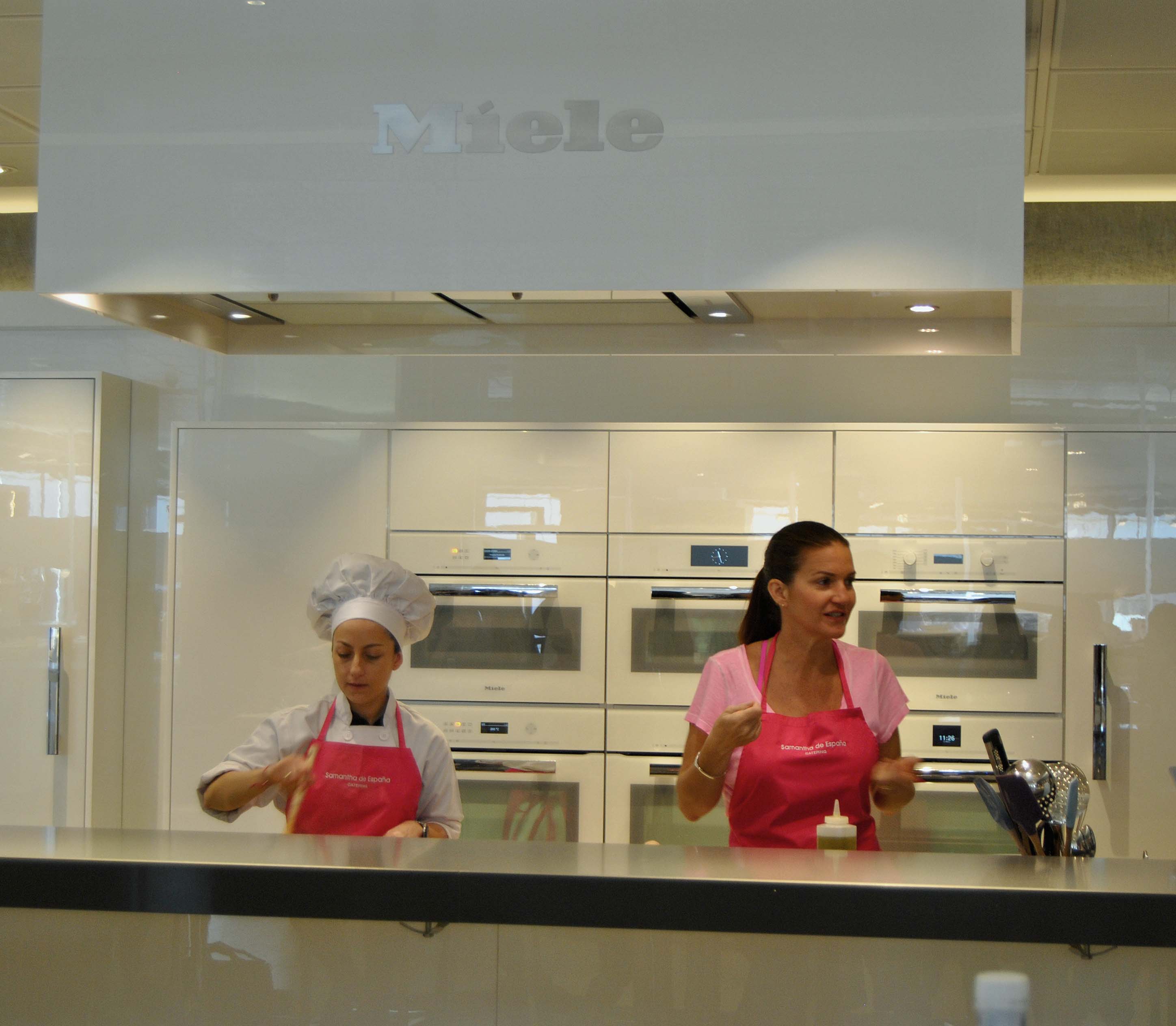 La primera en impartir su clase en Miele Center Madrid fue Samantha Vallejo-Nájera, la conocida miembro del jurado del programa Master Chef (TVE), quien realizó junto a una veintena de alumnas un menú completo compuesto, entre otros platos, por un wok de gambas salteadas con verduras, huevos benedictinos y crumbles de frutos rojos. Todos los platos fueron cocinados con los electrodomésticos de la Generación 6000 de Miele, preparados para dar un resultado profesional en la cocina.