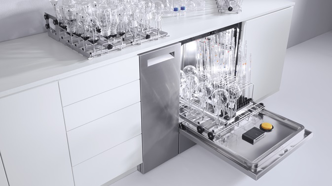 El alto estándar en higiene y pureza que ofrecen estas nuevas lavadoras desinfectadoras PG 85 es el resultado de la integración de los elementos calefactores en la bomba y la tecnología láser utilizada para soldar las secciones de la nueva cuba, garantizando así la ausencia de escalones y huecos donde se podrían ir acumulando restos de suciedad. También contribuyen al alto nivel de higiene el sistema de filtrado multi-etapa, encargado de eliminar las partículas de suciedad del agua de lavado, y el nuevo diseño de los brazos aspersores con distintas clases de boquillas que son capaces de eliminar la suciedad más difícil y humedecer de forma homogénea el vidrio de laboratorio.