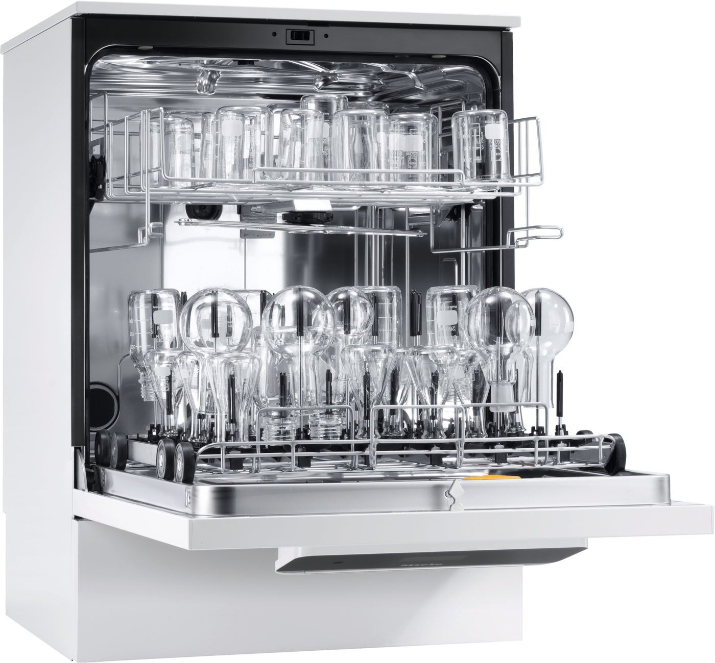 Es posible la preparación simultánea de vidrio de laboratorio en el cesto superior. - Flexible y sencillo: Carro modular y sistema EasyLoadCarro de uso flexible
